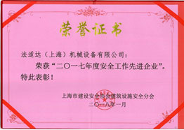 榮獲市“2017年度安全工作先進企業”