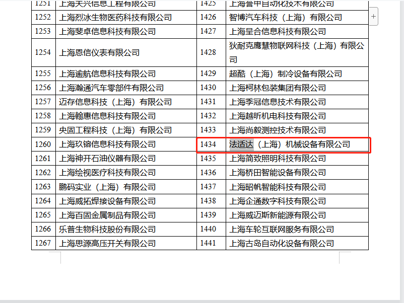 法適達(上海)機械設備有限公司榮獲上海市經濟和信息化委員會頒發的《上海市專精特新中...